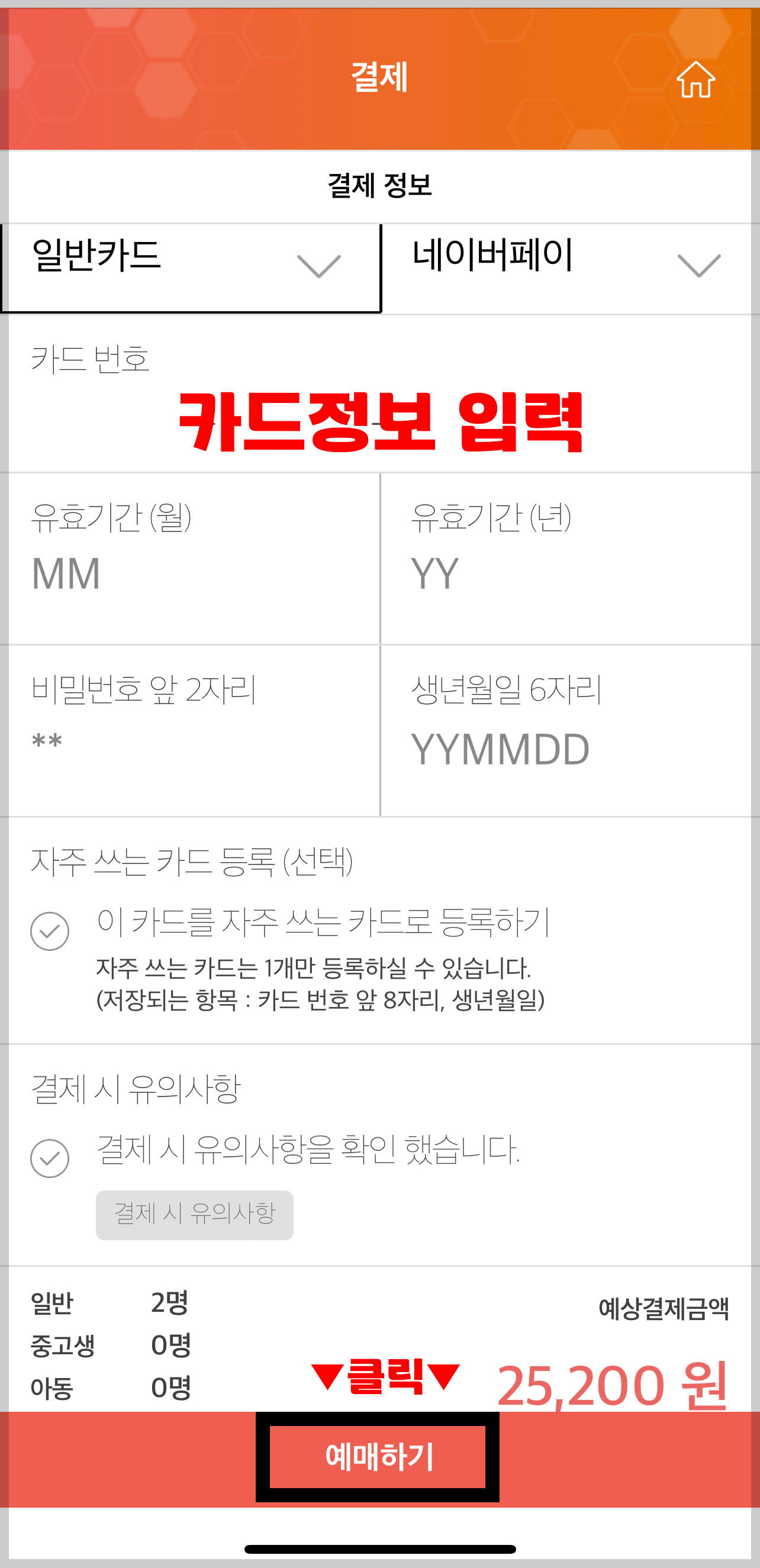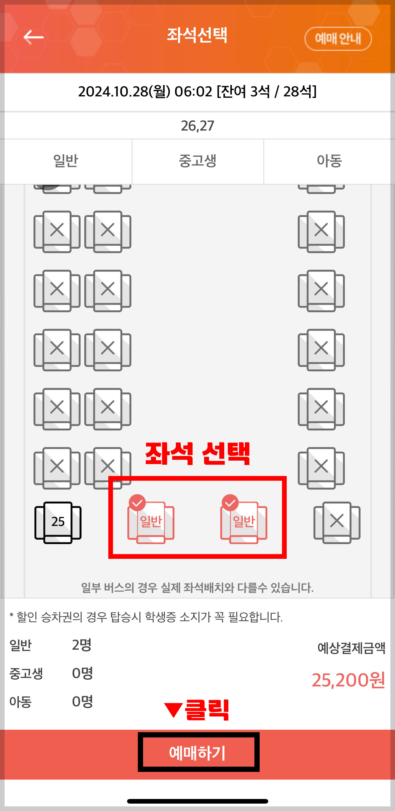 4. 원하시는 좌석을 선택합니다. '예매하기'를 클릭하신 후 결제정보로 이동합니다.