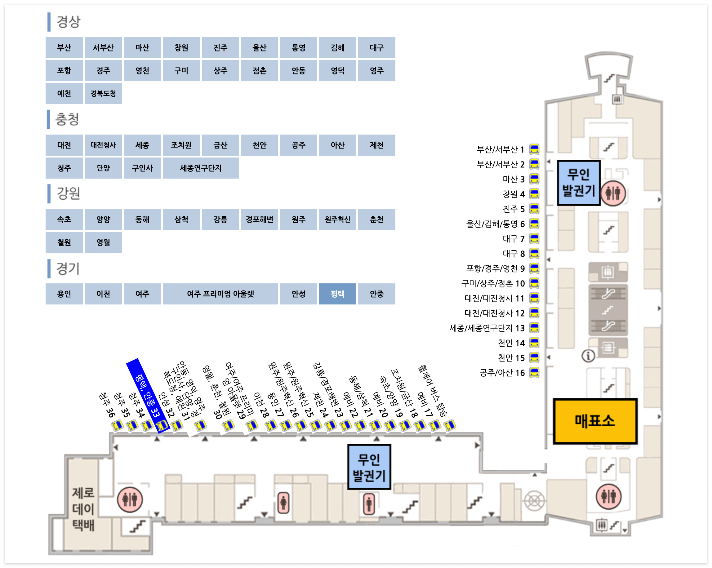 📌 승차홈 / 매표소 안내