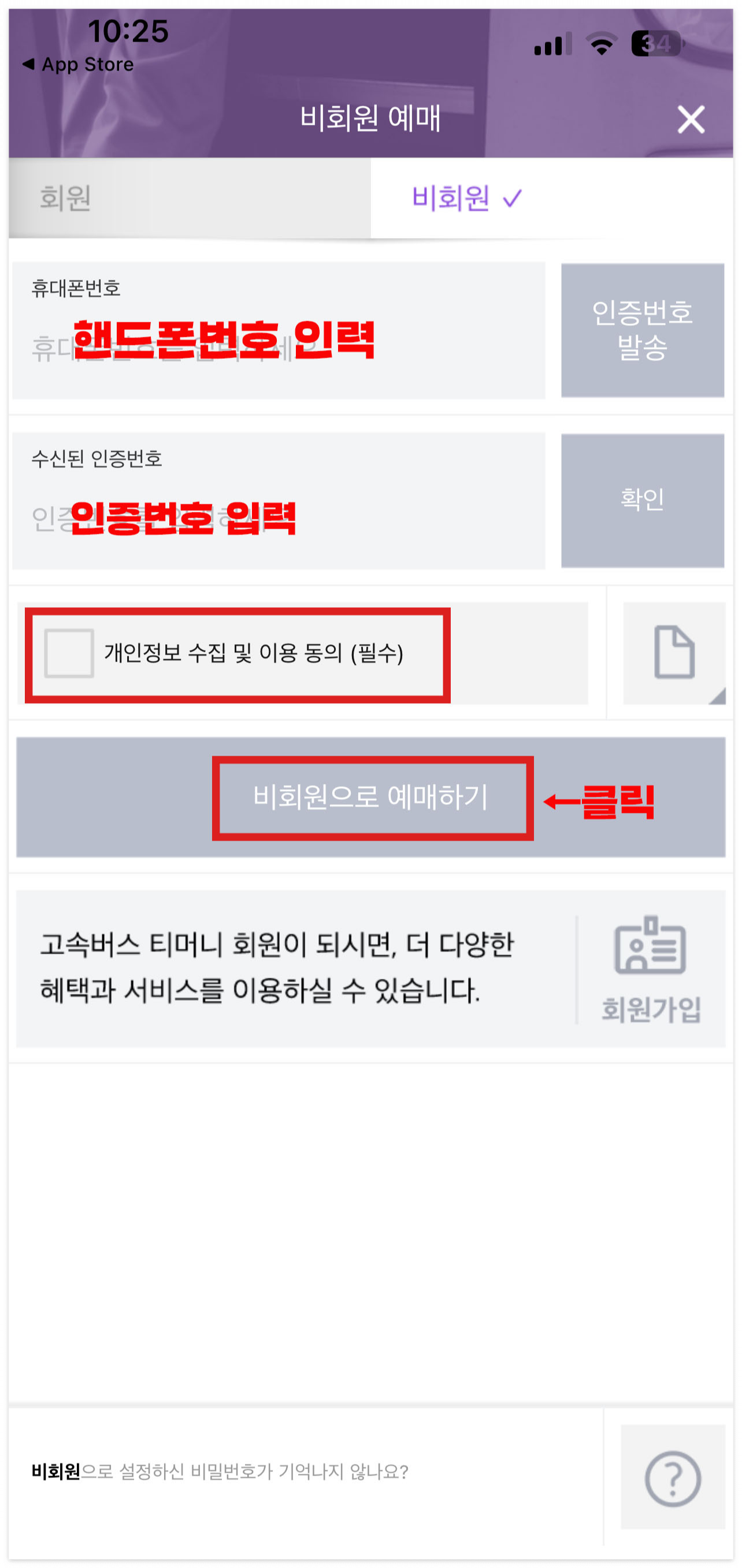 1) 전국고속버스터미널 어플을 통한 예매