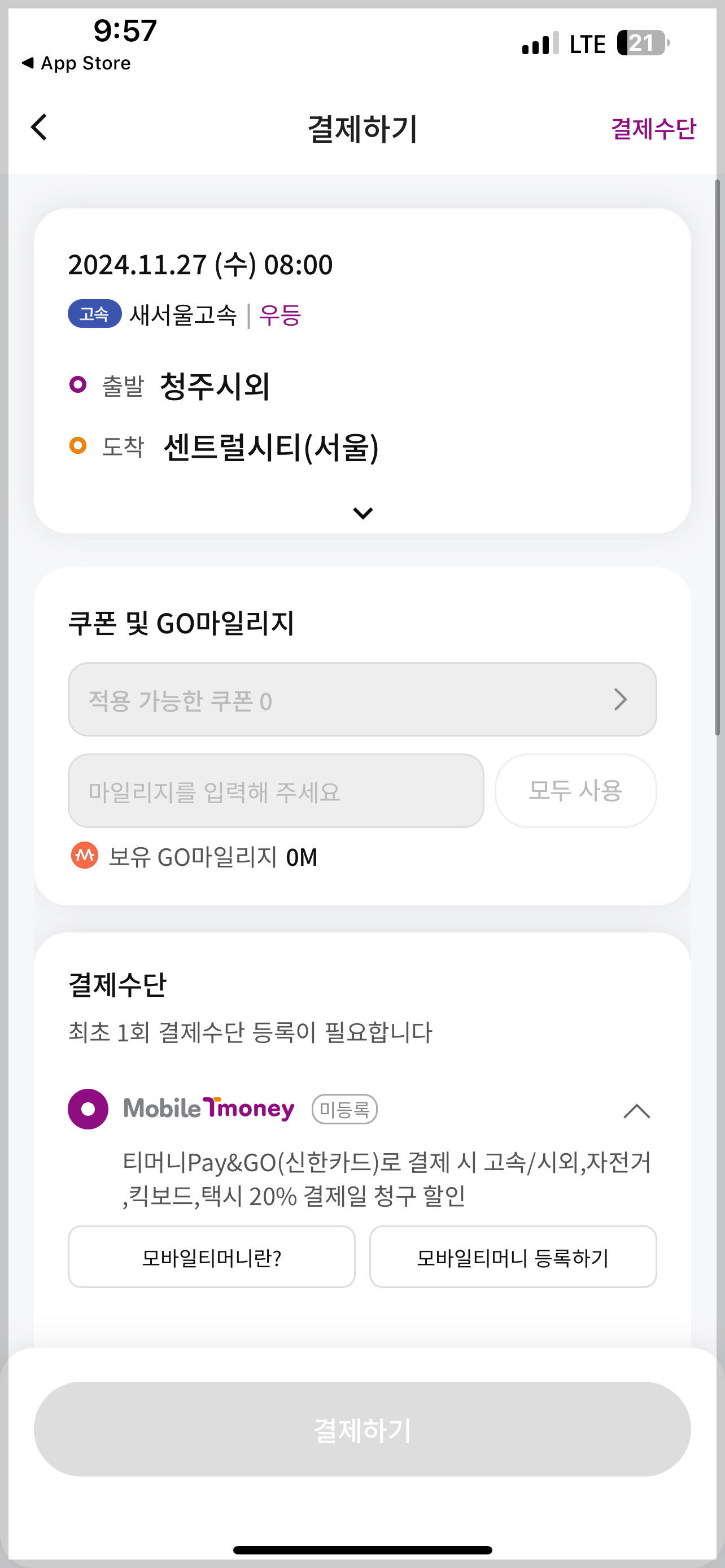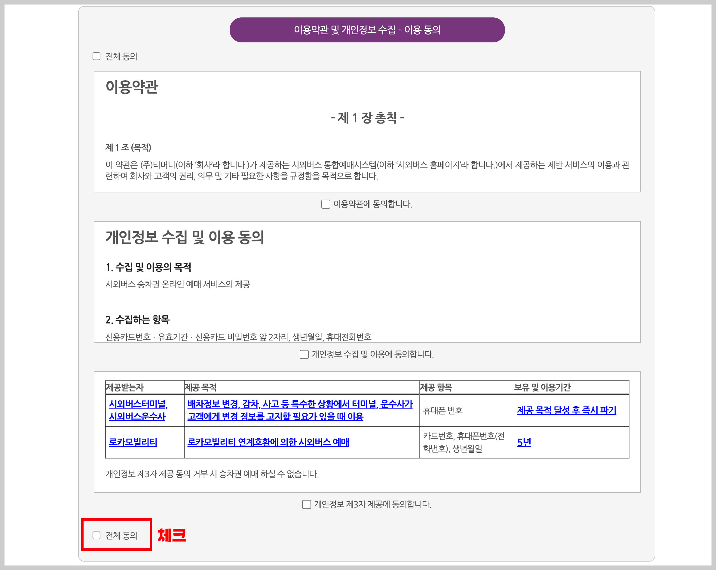 1️⃣ 청주시외버스터미널 " 티머니 버스" 홈페이지 예매 방법