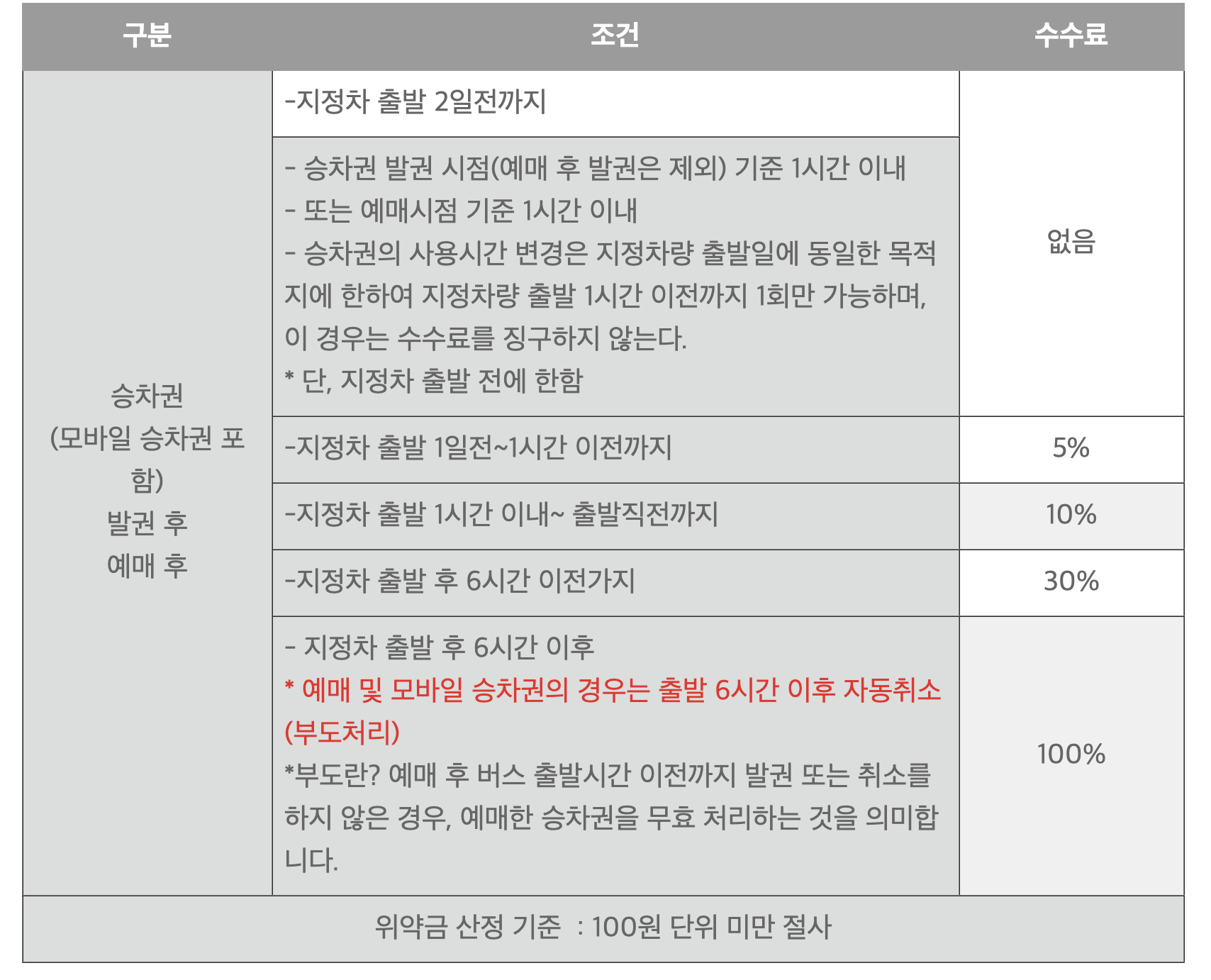 제천시외버스터미널 승차권을 예매 후 사정에 의해 취소나 변경 혹은 조회하기가 필요하실 수 있습니다. 아래로 가시면 승차권 조회및 변경, 취소가 가능합니다. 일정 날짜 기준으로 수수료도 발생하오니 수수료는 아래의 수수료 기준 표를 참고하시기 바랍니다.